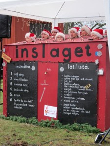 On the way out, we got caught by the carolers.  K demands that we stay and listen to them and listen to them and listen some more.  And luckily, they weren’t half bad, even if it was all a capella.  (Being in Swedish also added a nice ring to it.)  But finally, we got back in the car and left the largest Christmas Fair in all of Scandinavia behind.  But, will this be our last foray into the abyss of holiday cheer?  Oh no.  On December 1stthere will be another Christmas Fair at Kalmar Castle, a real authentic European castle!!!  (I’ve yet to see one so I am very excited.)  And like any good parent, my wife and I will simply forget about the bad experience we had at this fair and joyfully immerse ourselves, and our two boys, into another wonderful family holiday experience.