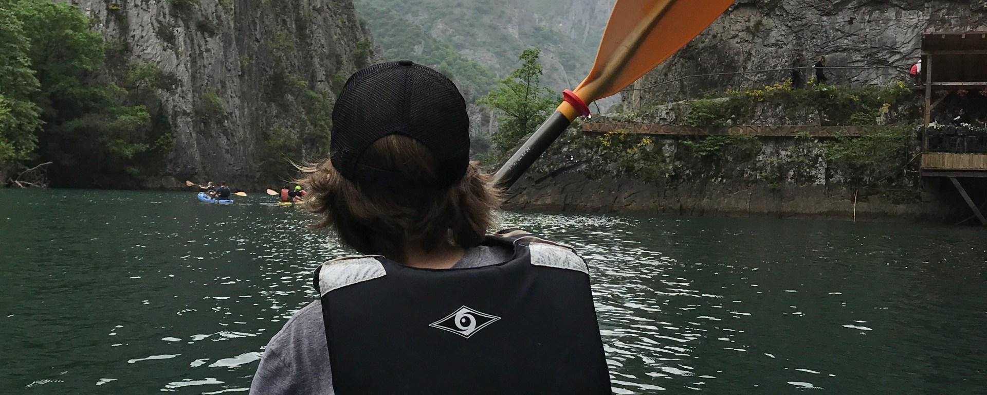 Saturday morning, the family nomadic receives a text from super neighbors inviting us to go kayaking in Makta. Yes!! The external stimulus is enough to put us into action and kick us out of our typical lazy morning routine (which we really do enjoy). 10am, driving out to the canyon passing through quaint Albanian villages with red terracotta shingled roofs, Brother M states very matter-of-factly, “That is the perfect village…for ninjas. They travel by running across those rooftops and jumping building to building. But undercover ninjas ride in cars.” Momma S replies, “So I guess you are an undercover ninja.” “No mom, I’m a kid, not a ninja.”