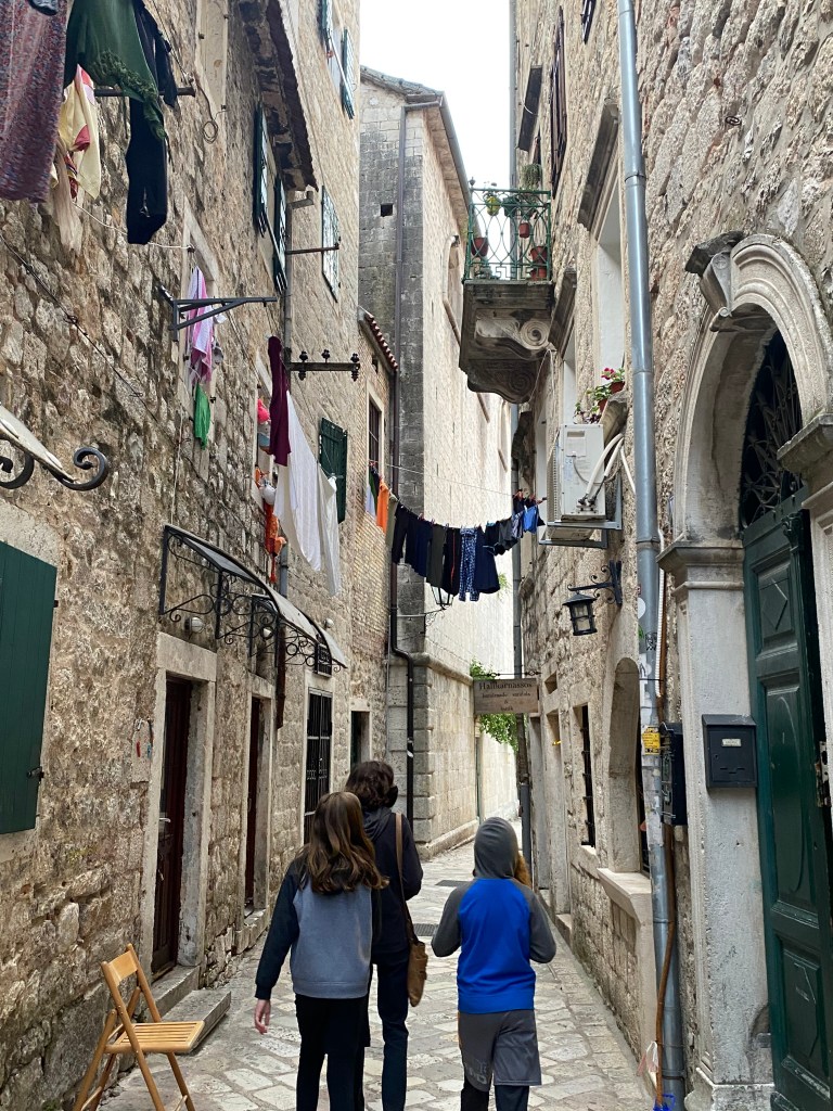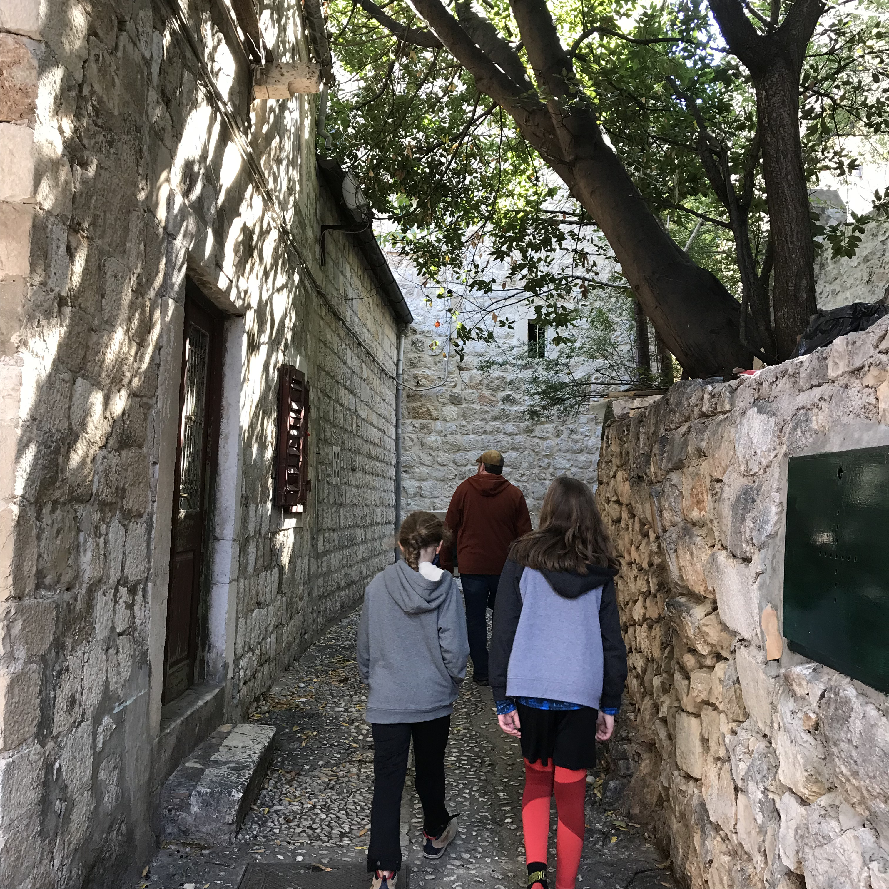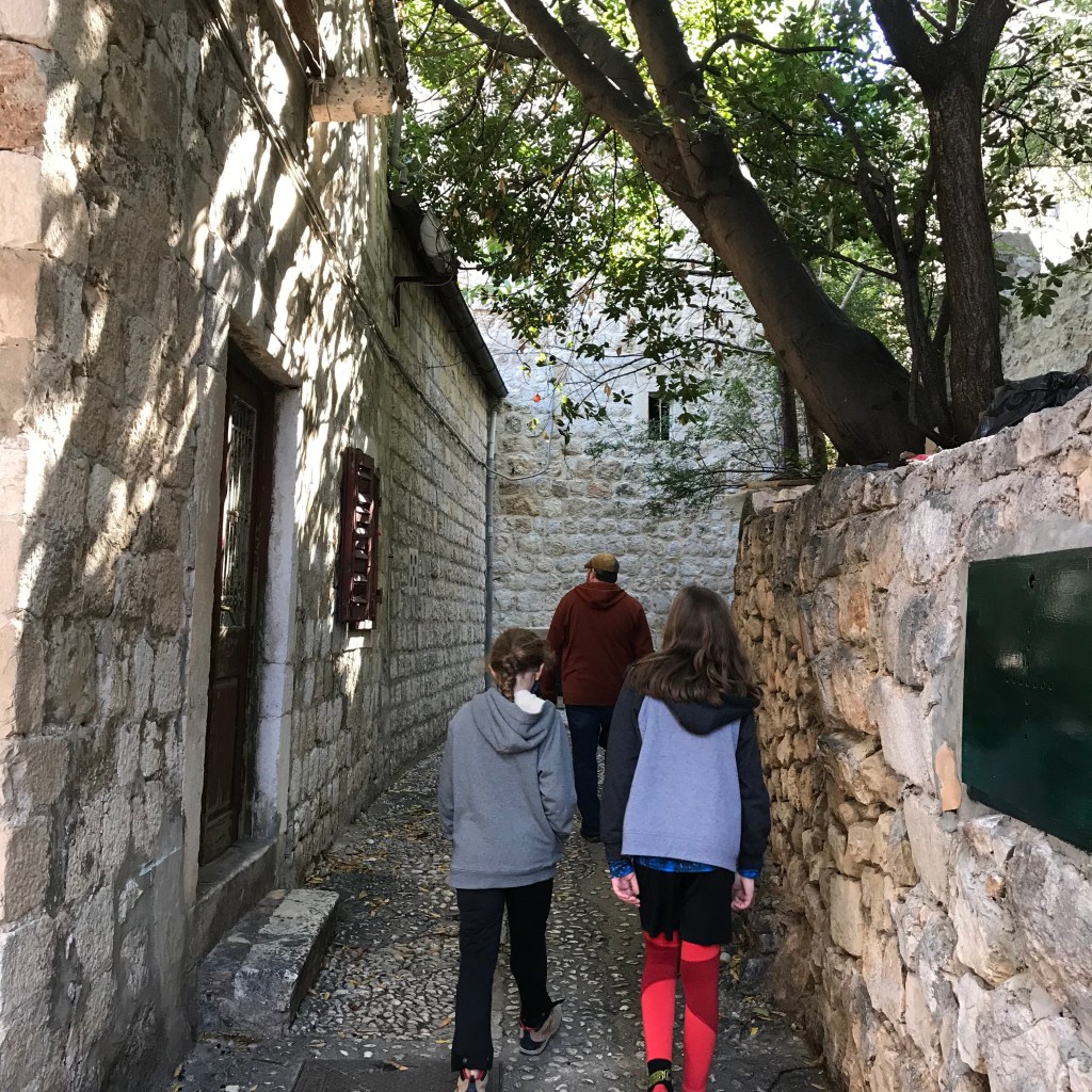 2. Exploring Kotor Fortress – in a short break from the rain on Sunday morning, our family layered up and trudged up the 1350+ stairs that start at the back of Old Town Kotor and went up and up the mountain following the ancient walls built to keep the Ottoman Turks away. Brother K wants to make it known that the climb up and down is NOT part of his favorite thing. He just loved being at the top and running through the old ruins of the ancient fortress. It is like a maze and has multiple levels to explore. Here, his imagination was able to run wild as he looked out at bay below and the mountains above.